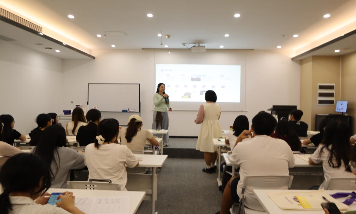 在分享会上,我们2024届日语专业校友依琳以星火教育管培生身份分享自己的成长经历。她从公司概况、福利待遇、岗位设置及求职技巧四个方面展开介绍,重点解读了“双岗发展”的管培生模式:既承担教师岗,又兼顾职能岗,且职能岗拥有广阔晋升空间,并就同学们关心的薪资问题进行了细致解答。